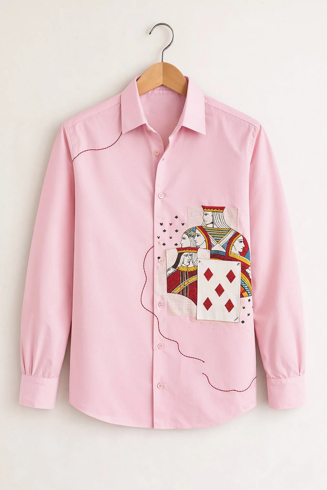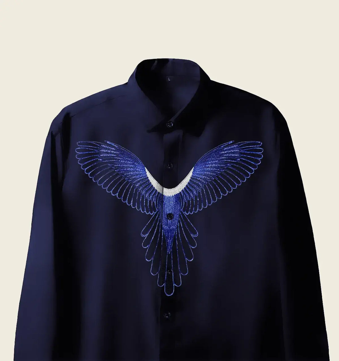 Men’s Navy Blue Eagle Wing Embellished Shirt